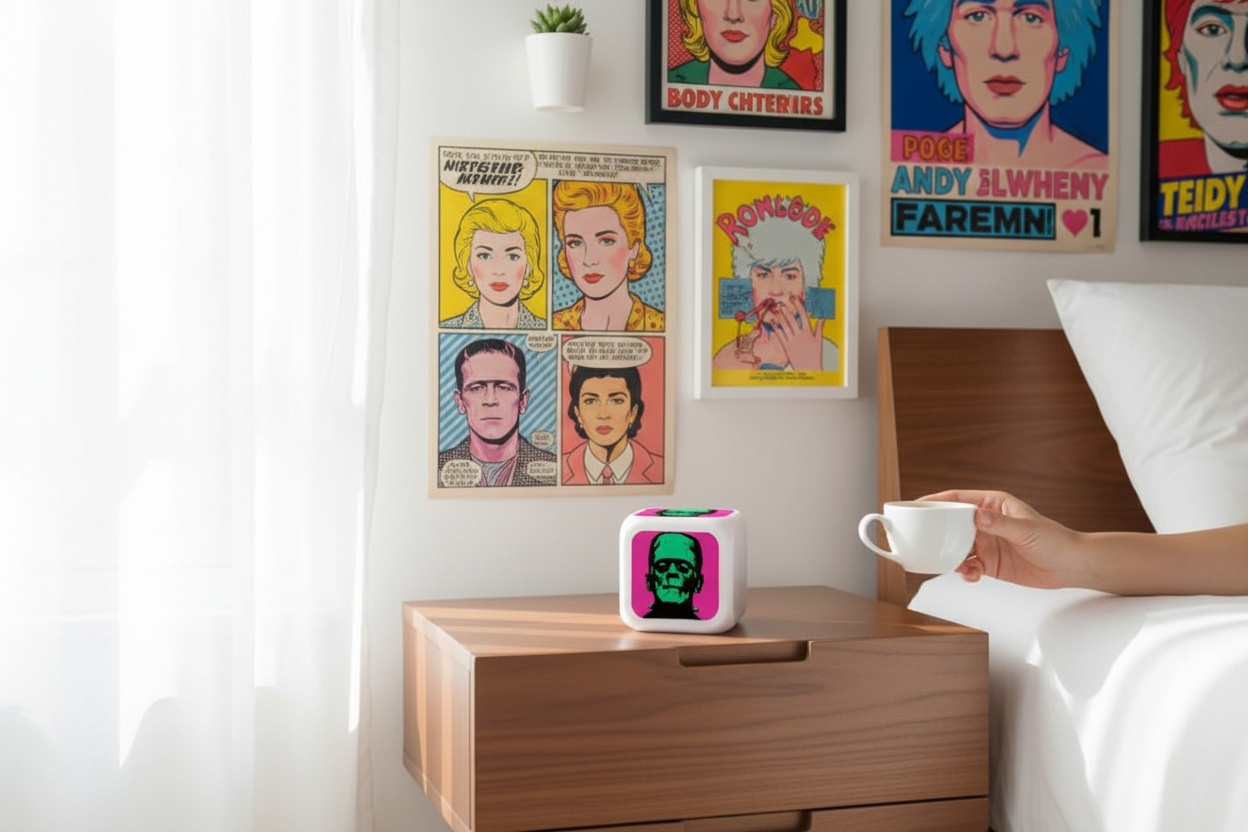 • 🎨 Diseño visual atractivo y personalizable: Disponible en 3 versiones gráficas (retro pop-art o terror). Además, puedes personalizarlo con tus propias fotos, imágenes o diseños para darle un toque único y especial.